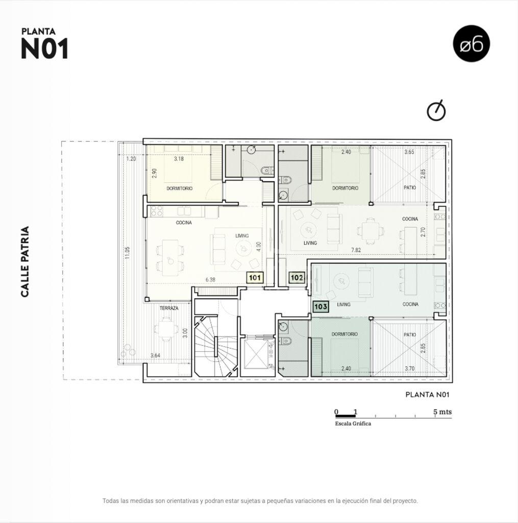 Las unidades, tanto al frente como al contrafrente, se destacan por su excelente orientación, garantizando ambientes amplios y luminosos. El edificio incorpora 4 terrazas privadas con parrillero, un espacio de lavandería (Laundry) y 8 garajes privados para mayor comodidad.